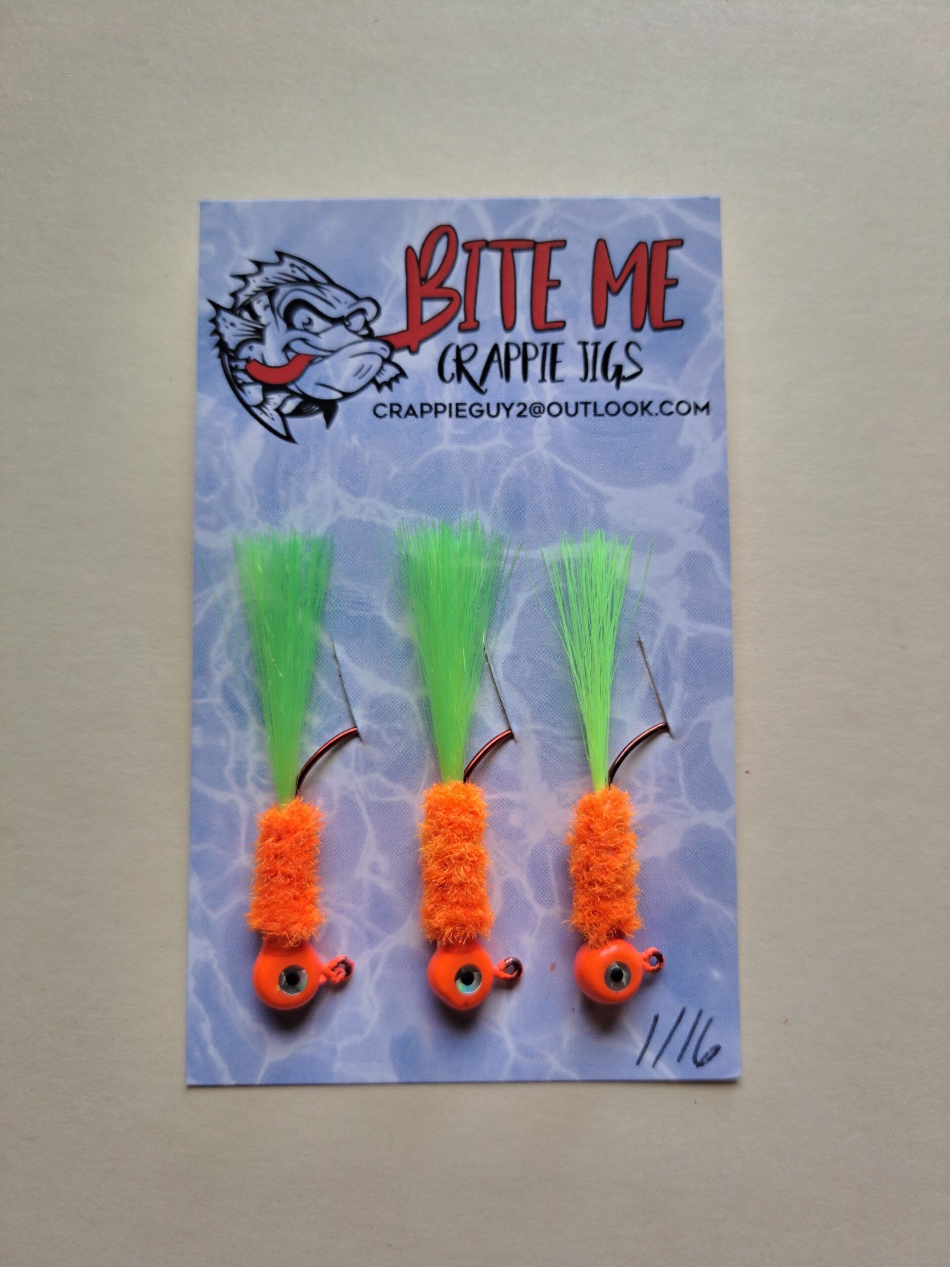 1/16 oz. crappie jig w/ #2 red sickle hook